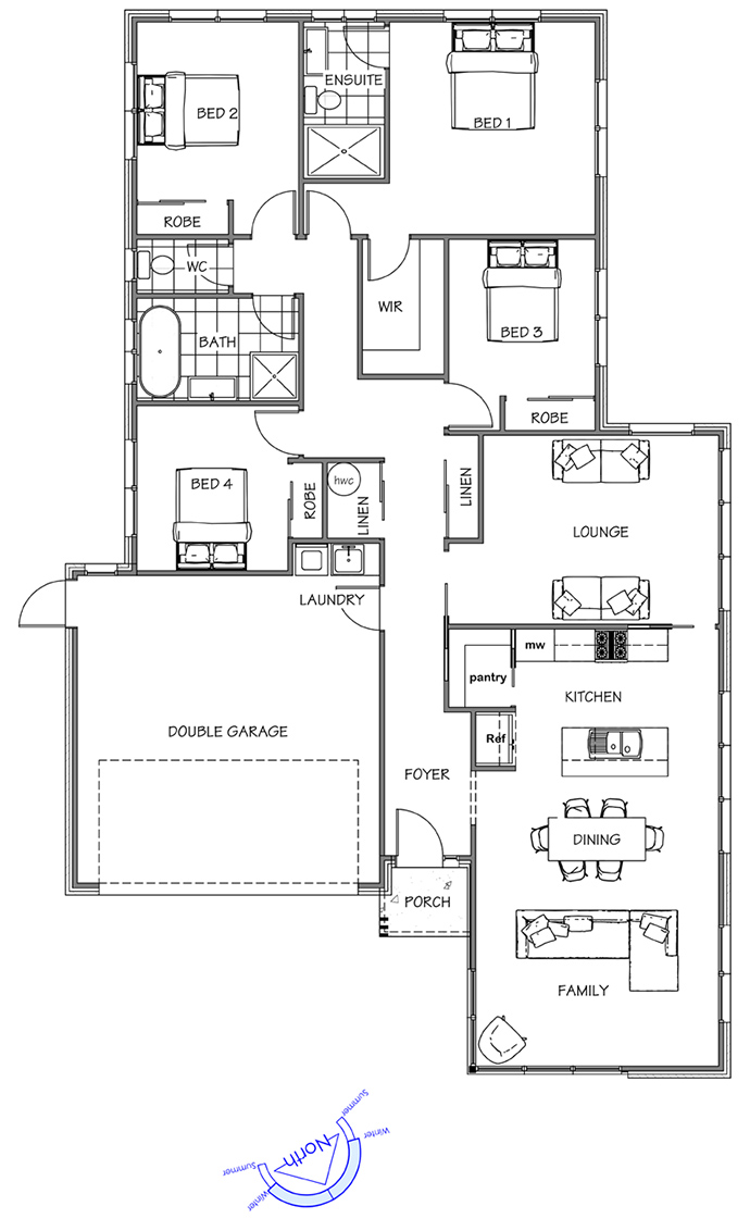 The kitchen is at the heart of this brilliantly thought-out family home, centred between the sun-soaked living areas. The generous master suite to the rear boast a spacious ensuite and walk-in wardrobe, while the remaining 3 bedrooms are well-served with a family-sized bathroom and separate toilet. Large format windows help capture natural light and bring the outside in.