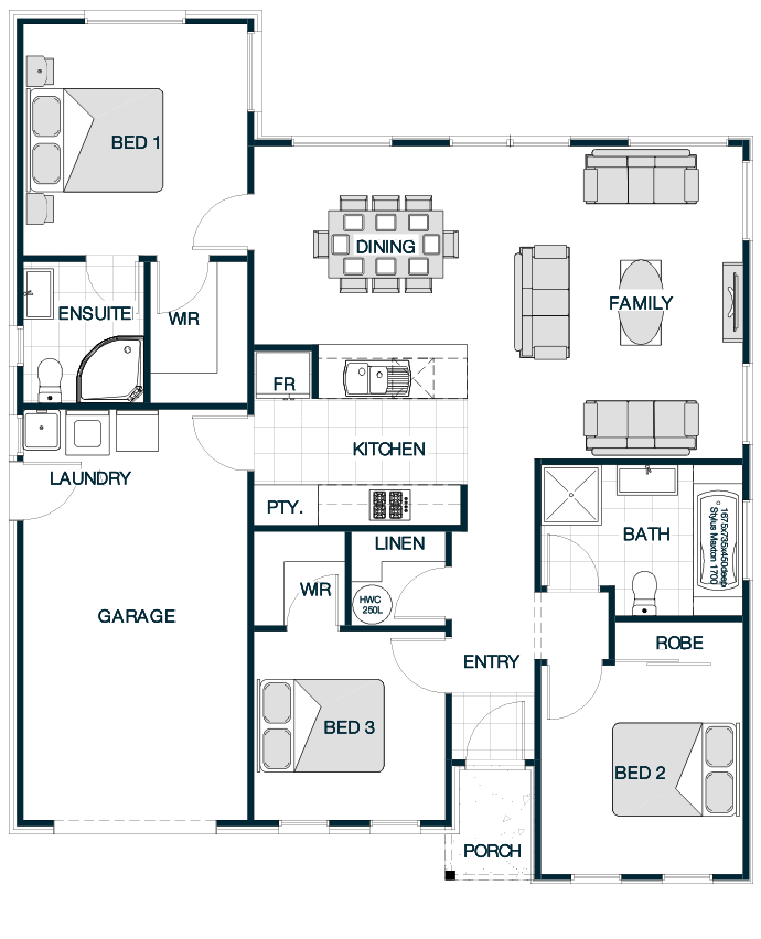 The Chelsea plan is a thoughtfully designed 125m home that seamlessly combines modern aesthetics with practical living spaces. Featuring three spacious bedrooms, including a master suite with a walk-in robe and ensuite, the home centers around a generous open-plan living area. The versatile roofline options gable, mono, or hip allow you to personalise the home's exterior to suit your style and the surrounding environment. Whether you prefer the classic symmetry of a gable, the sleek lines of a mono pitch, or the elegant proportions of a hip roof, the Chelsea plan provides a solid foundation for your dream home.