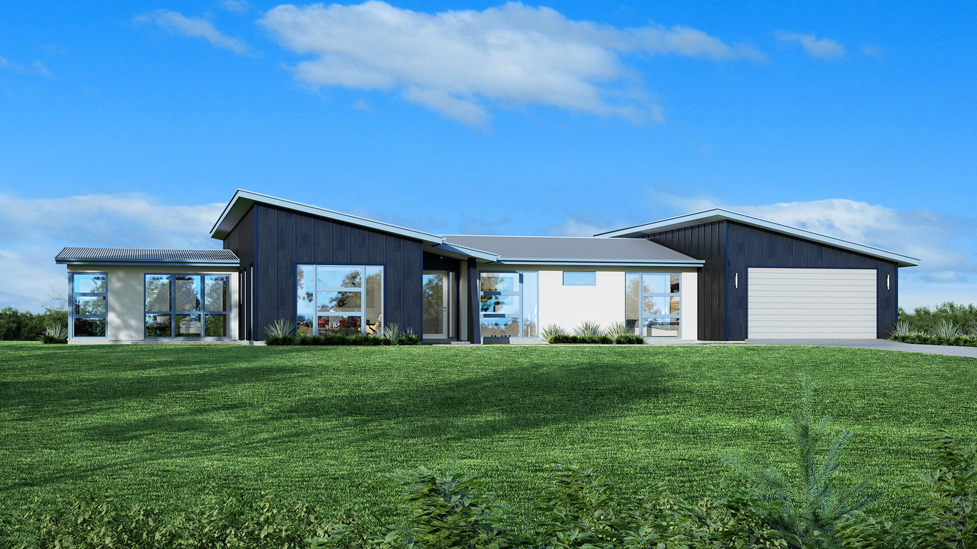 The Clevedon with a Mono pitch roofline brings a bold, contemporary edge to a spacious lifestyle home. Clean, modern lines complement the open-plan layout, with soaring ceilings and expansive glazing that capture natural light and rural views. This design is perfect for those seeking a modern aesthetic without compromising on comfort, space, or functionality.