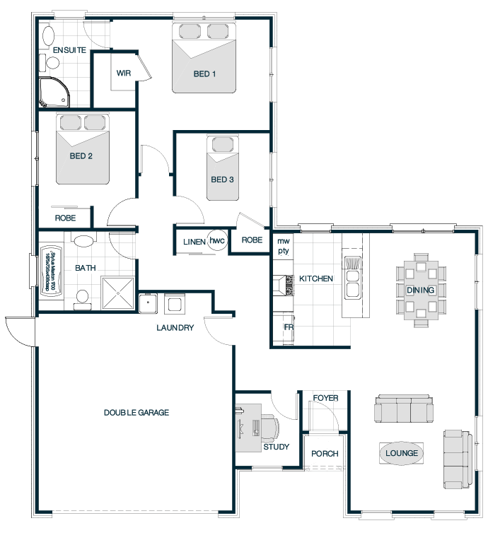 The Cloudy Bay Gable is a cleverly engineered home that offers maximum usable space and a sense of luxury, all within a compact 150m footprint. It includes 3 bedrooms, 2 bathrooms, a double garage, and a study nook, making it ideal for families, professionals, or downsizers seeking style and efficiency