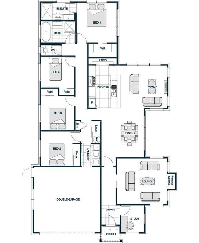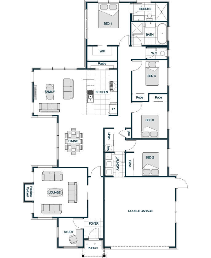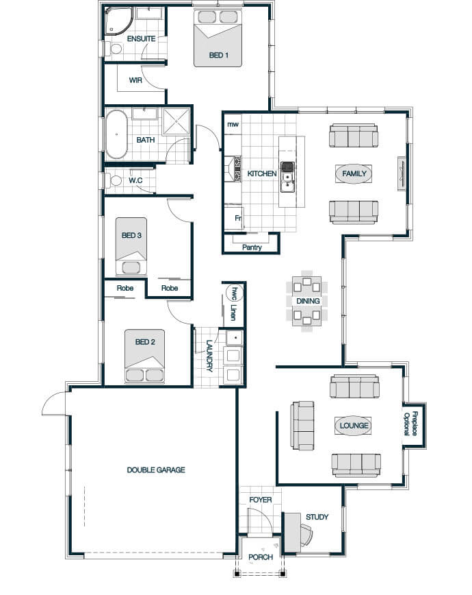 The Linkwater Gable is a spacious, contemporary family home designed to offer comfort, style, and flexibility. With floor plans ranging from 187m to 239m, it typically includes 3 to 4 bedrooms, 2.5 bathrooms, and a double garage. The elegant gable roof is classic and timeless