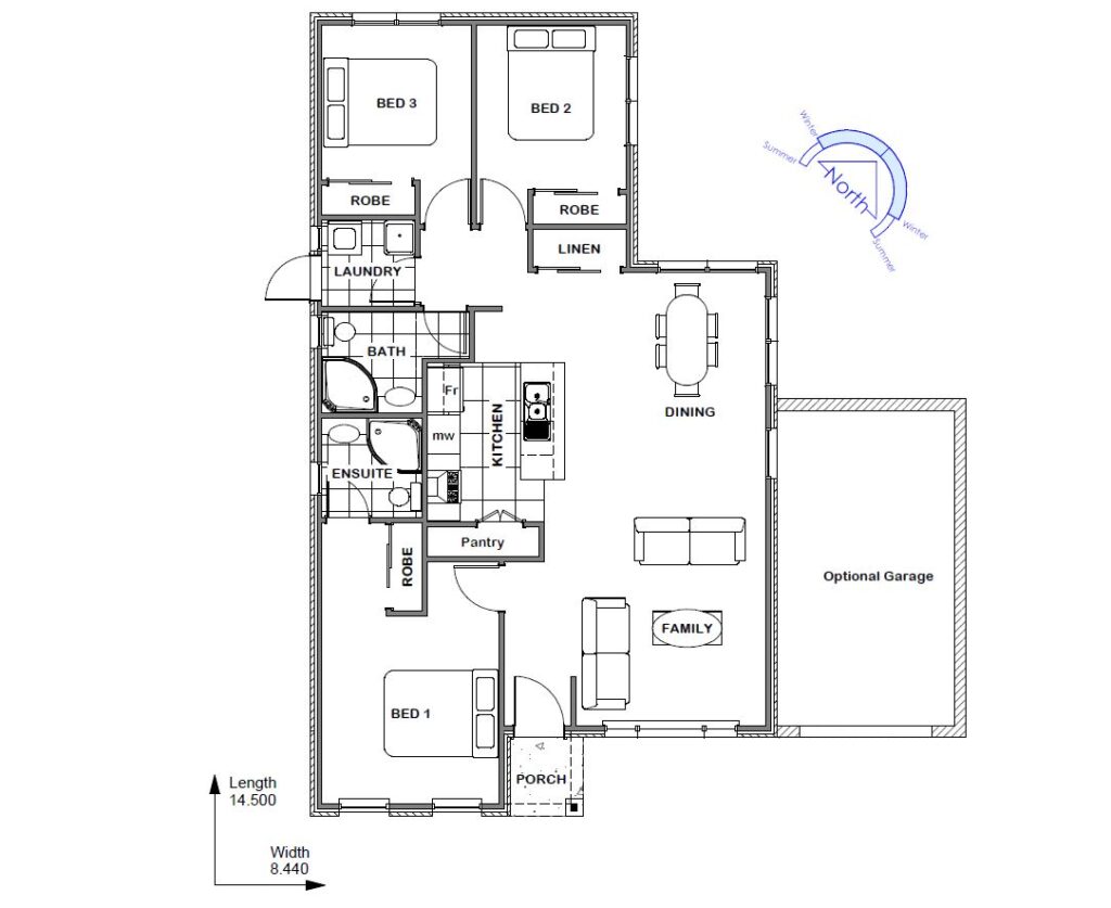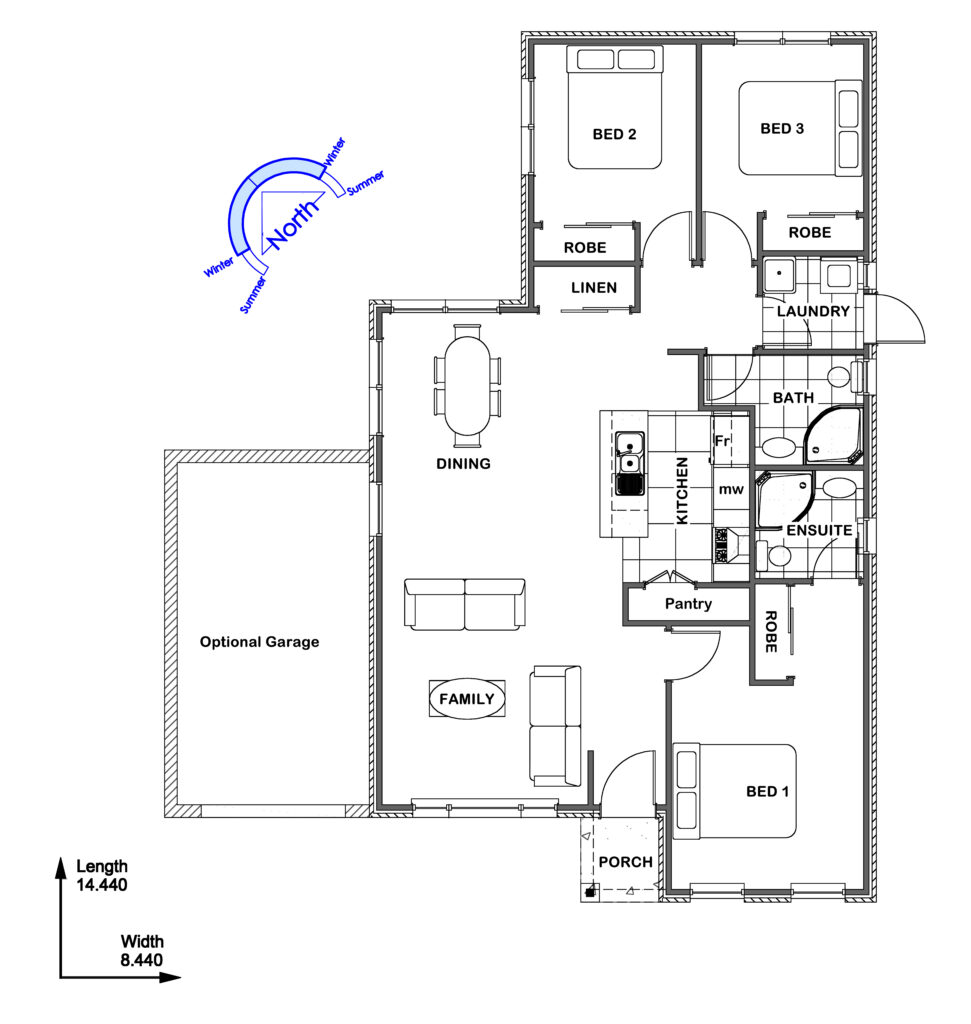 The Maple 106 Hip is a compact 106m home designed for modern lifestyles, featuring a classic hip roofline for durability and aesthetic appeal. With two bedrooms, two bathrooms (including a separate WC), and a separate laundry, this home maximizes every square meter. The optional garage adds practicality, while the open-plan living area is filled with natural light, creating a spacious feel. Perfect for couples, small families, or as a holiday home, the Maple Hip offers customisable finishes to suit your style and needs.