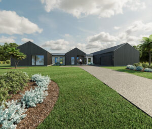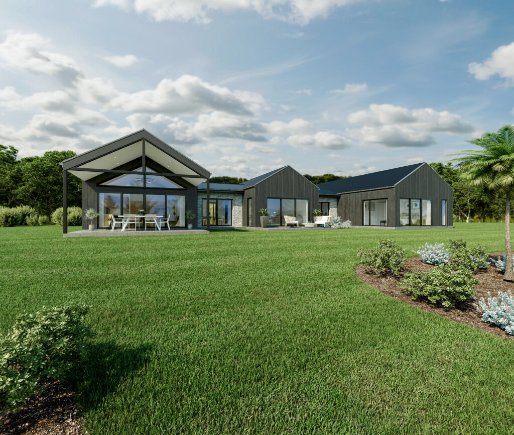The soaring gable roof line features and expansive windows that invite natural light to flood the interior, creating a bright and airy atmosphere. The pale colour palette enhances the sense of openness, making this design equally suited for coastal or country settings. This combination of architectural elements not only adds to the home's contemporary appeal but also ensures a refreshing and inviting living environment. A stunning contemporary home ideal for families with older children. This fabulous home has been designed specifically for rural living and large suburban sections and creates a dramatic first impression.