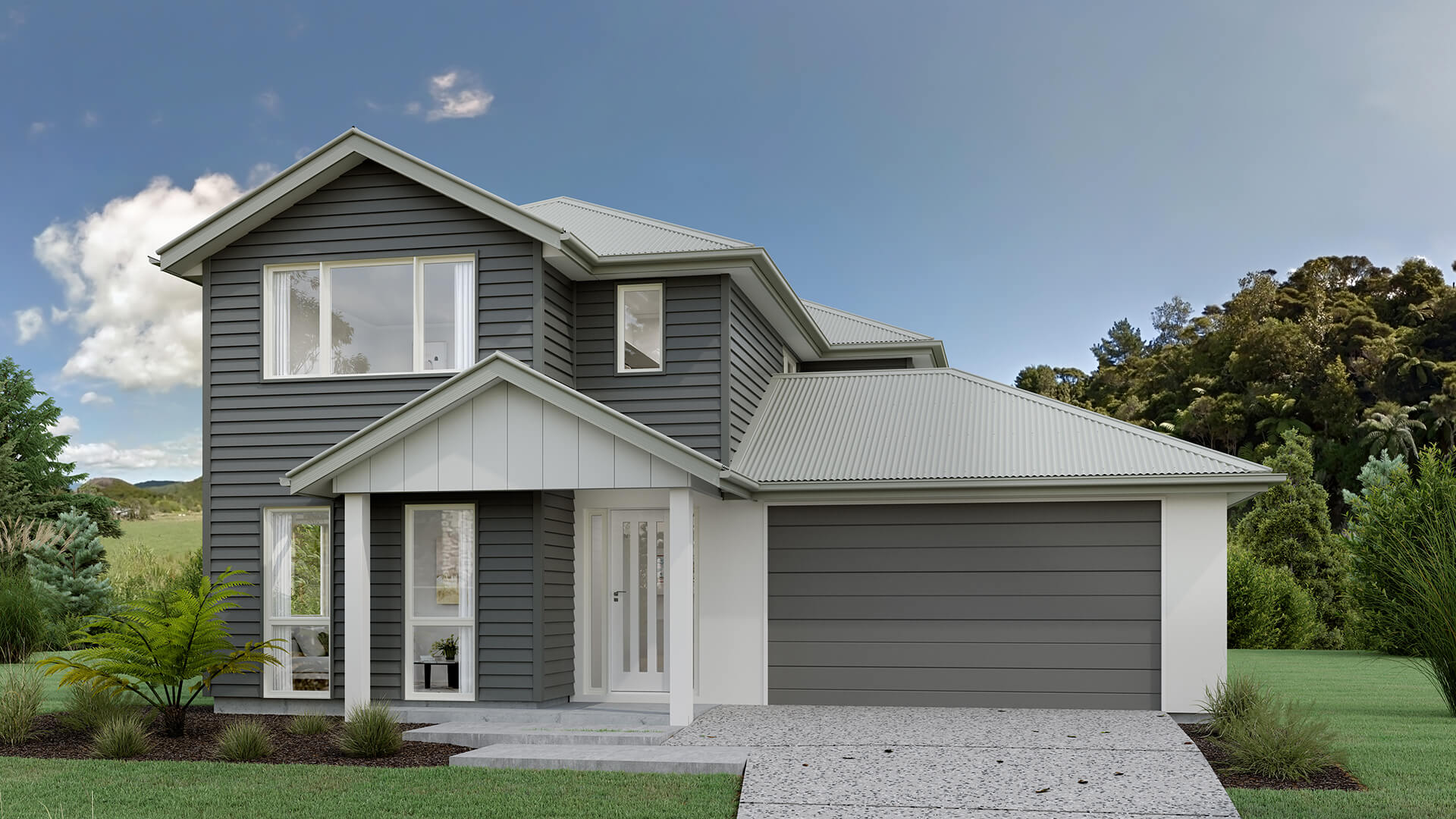 The Parnell Gable offers strong architectural symmetry in a luxurious and spacious home designed to cater to growing families with ease. With a generous floor area of 272m, it includes 5 bedrooms, 3 bathrooms, and a double garage. The layout is crafted to offer both open-plan living and private retreats, making it ideal for entertaining and everyday comfort