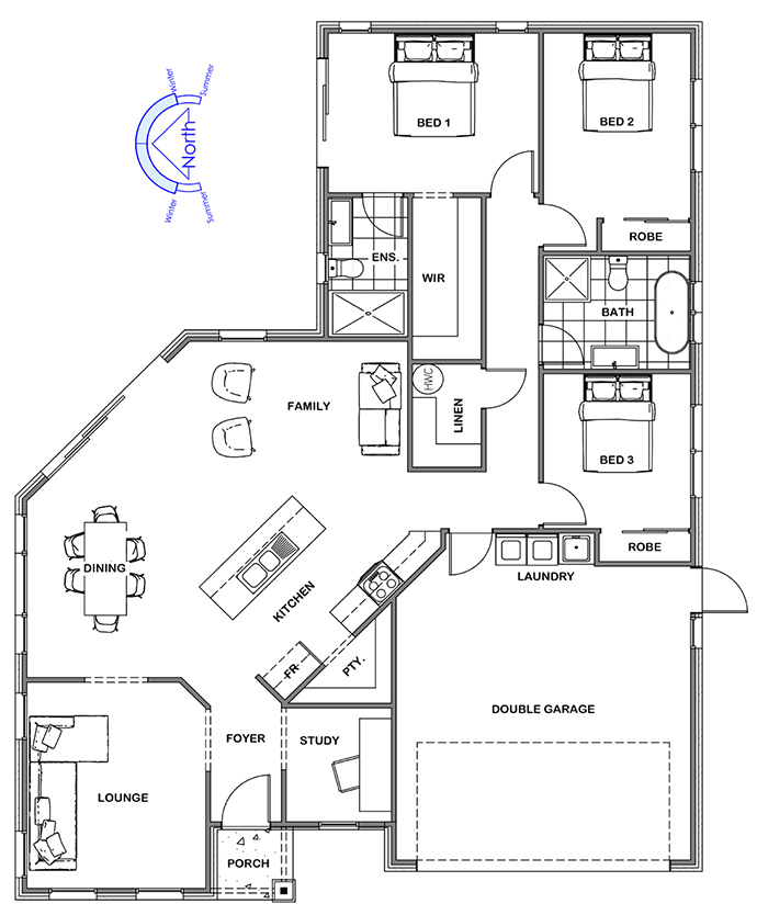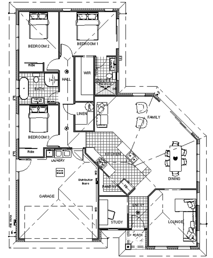 Radiating out from a modern galley style kitchen with spacious walk-in pantry, you get a sense of space as you walk through to the open plan family and dining area. Compact but clever, nothing is forgotten in the Renwick design. It includes a separate study and lounge room to the front of the home.