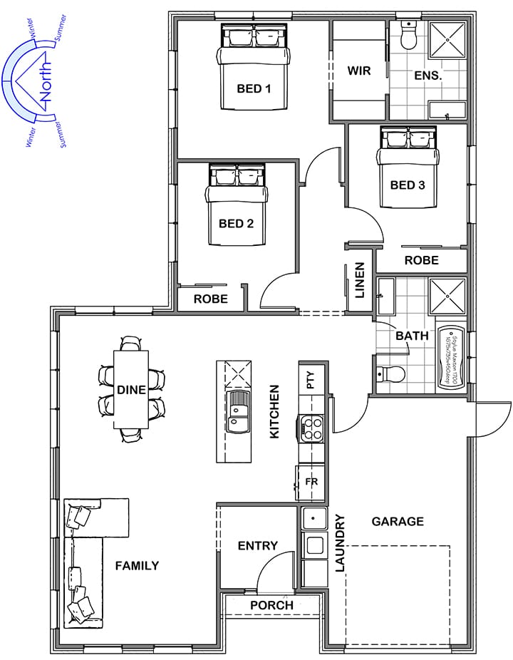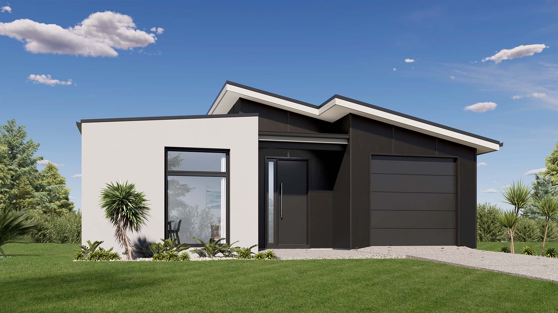 The clean slope of the Mono roof gives Riviere a contemporary edge. Inside, the entrance leads into a generous main living area where natural light cascades in. A galley-style kitchen sits just off this central space. Three bedrooms including a spacious rear master suite with ensuite and walk-in robes are zoned thoughtfully down the corridor, positioning daily life around a bright communal hub.
