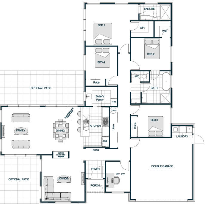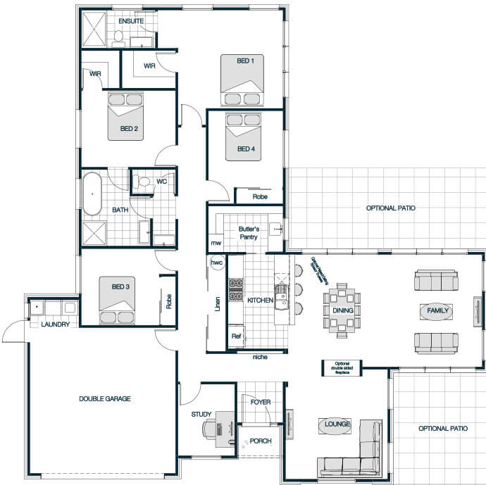 With its striking single-slope roofline, the Rosedale Mono Roof plan exudes contemporary sophistication. This design floods the interior with natural light, creating an inviting, open atmosphere. The clever layout unites the kitchen, dining, and living spaces for seamless flow, perfect for modern family life or entertaining guests. Featuring four generously sized bedrooms, including a private master suite with ensuite, this home balances minimalist style with practical comfort. The mono roof not only adds to the home's sleek exterior but also supports energy efficiency through smart design.