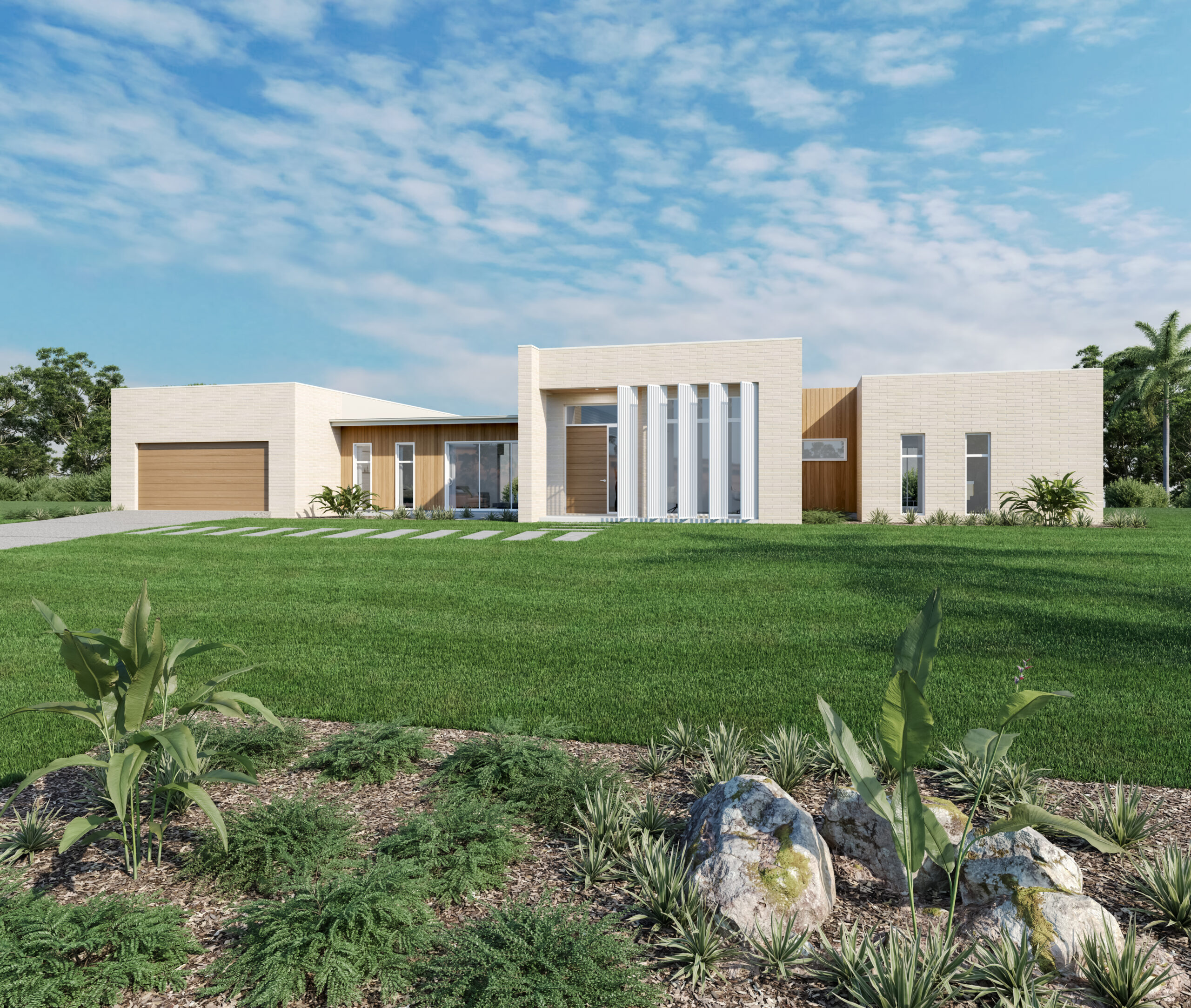 The Palmetto facade showcases a striking fusion of modern cube architecture and traditional materials, inspired by the iconic Palm Springs style. This innovative design features clean, geometric lines and a bold, contemporary silhouette, while the use of classic materials adds warmth and character. The result is a home that captures the essence of relaxed, sun-soaked elegance, offering a fresh and inviting take on modern living. A light-filled gallery forms the heart of the home and leads right into the spacious master suite decorated with its own walk-in robe and ensuite to capitalise on the home's initial impression. Go straight ahead and you enter the extensive main living areas or turn left to the kids wing with central activity room dividing the space and utility rooms occupying the remaining space.