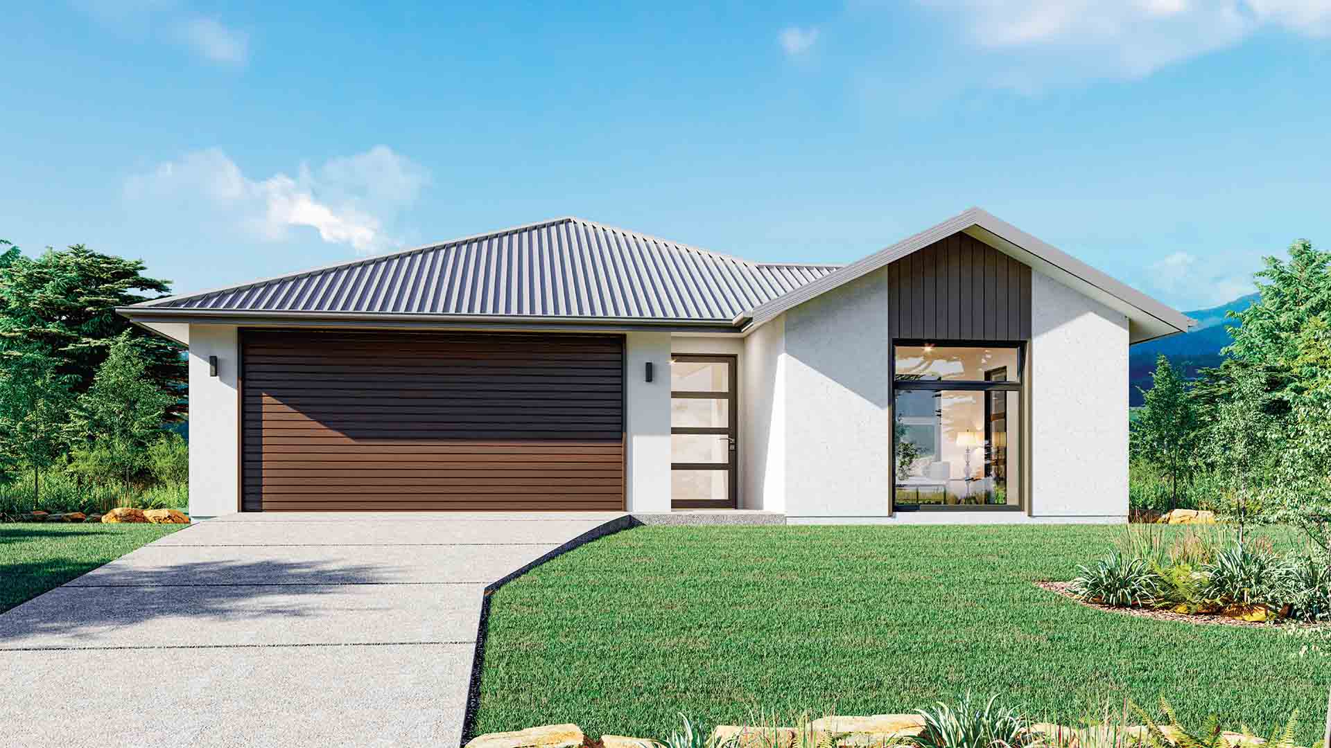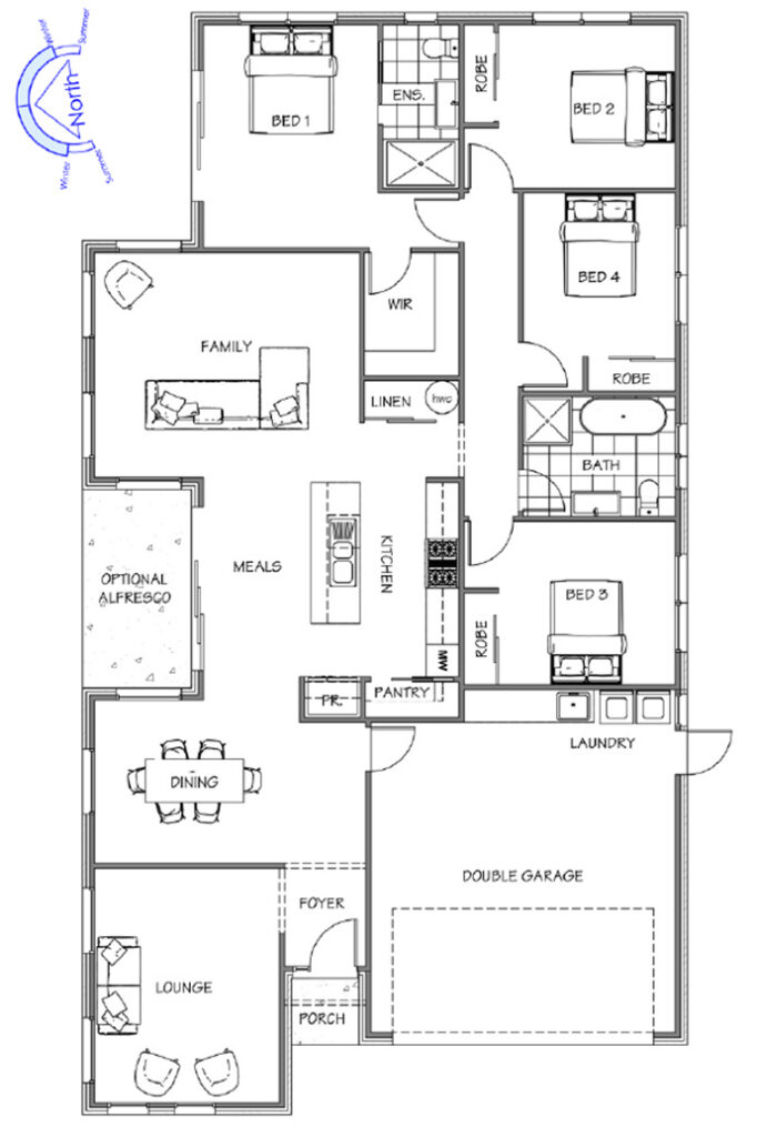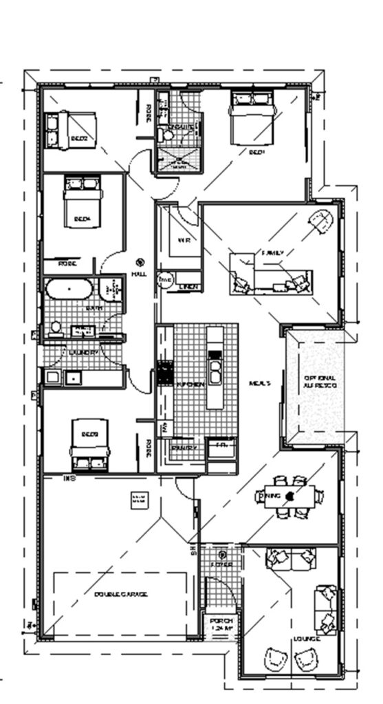 The Springwood Gable Roof plan features a classic pitched roof that adds character and charm to the homeÃs exterior. Vaulted ceilings inside amplify the spaciousness of the open-plan living, dining, and kitchen areas. Four bedrooms, including a private master suite with ensuite and walk-in robe, offer ample space and comfort for families. This design combines timeless architectural appeal with modern functionality.
