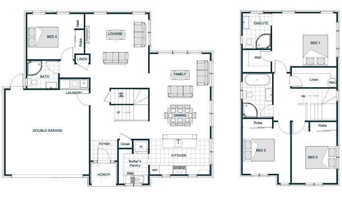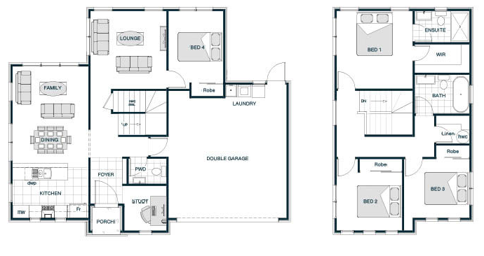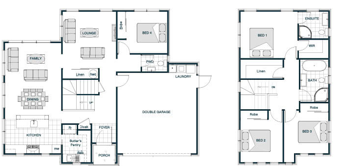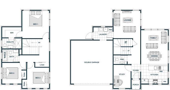 The Sutherland Hip Roof plan features a durable, four-sided roof that offers balanced proportions and a polished exterior look. The open-plan living area centers around a contemporary kitchen and connects effortlessly to dining and lounge spaces, creating a warm and inviting atmosphere. Three bedrooms, including a master with ensuite and walk-in robe, provide ample space for modern family life. The hip roof not only enhances weather protection but also adds timeless elegance.