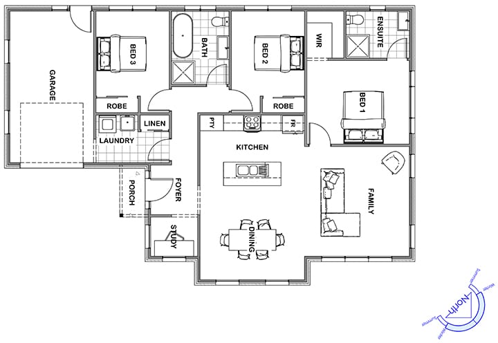 With its softly sloped Hip roof, the Waterview offers timeless street appeal. The interior plan focuses on seamless flow between living, dining, and kitchen zones, with direct access to outdoor living spaces. Bedrooms are thoughtfully zoned, with a master retreat that enjoys privacy and comfort.