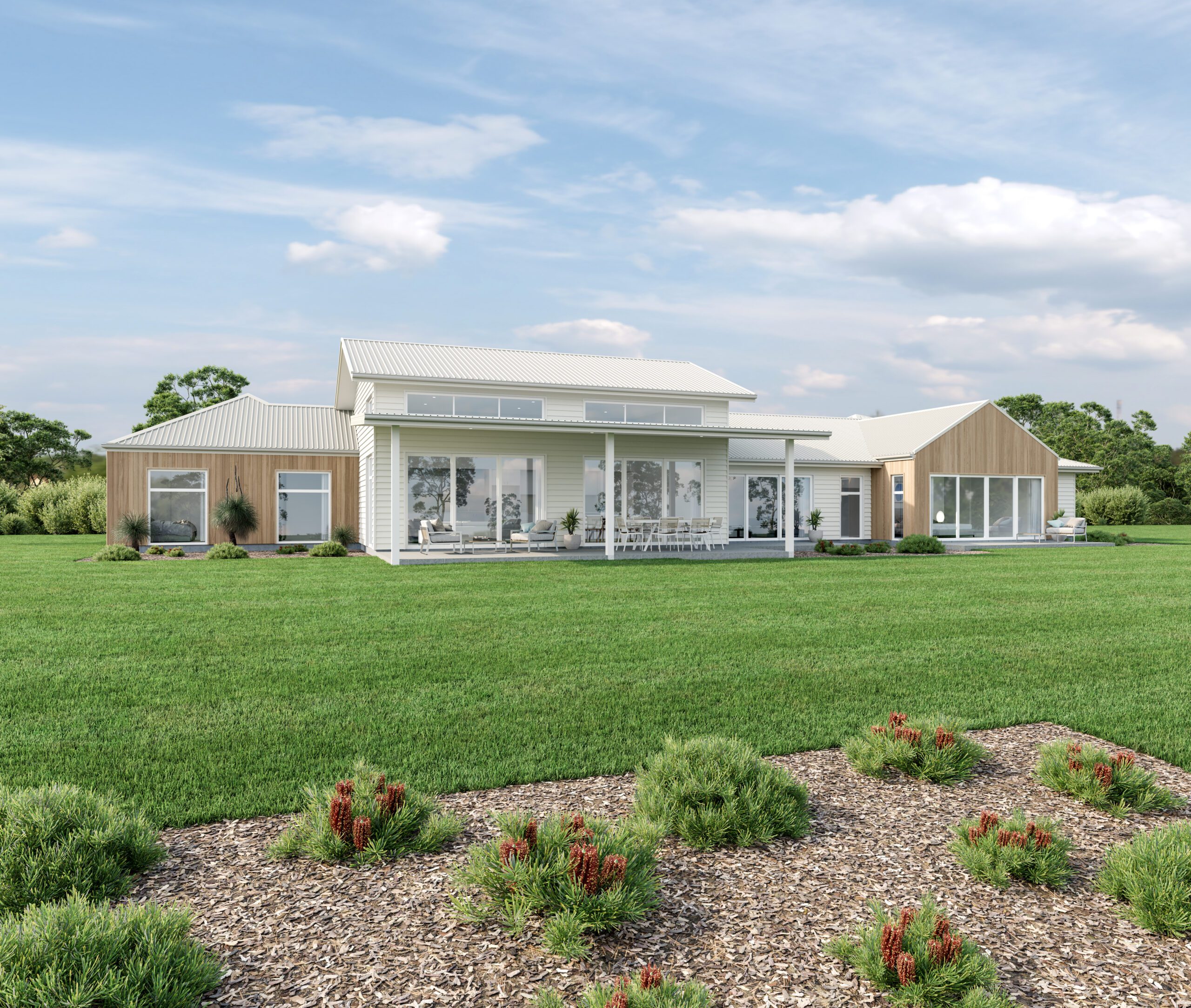 The elegant gable facade is a masterclass in striking simplicity and understated elegance. The clever use of vertical timber tones juxtaposed against stark white plaster walls creates a dramatic visual impact, enhancing both the home's street appeal and its modern aesthetic. This dynamic contrast not only defines the character but also adds depth and sophistication to the overall design. The three bedrooms are grouped around a central activity area, the generously spaced master suite privately located at the other end of the house with its complimented ensuite and walk in robe to further showcase this homes class and approach to luxurious living.