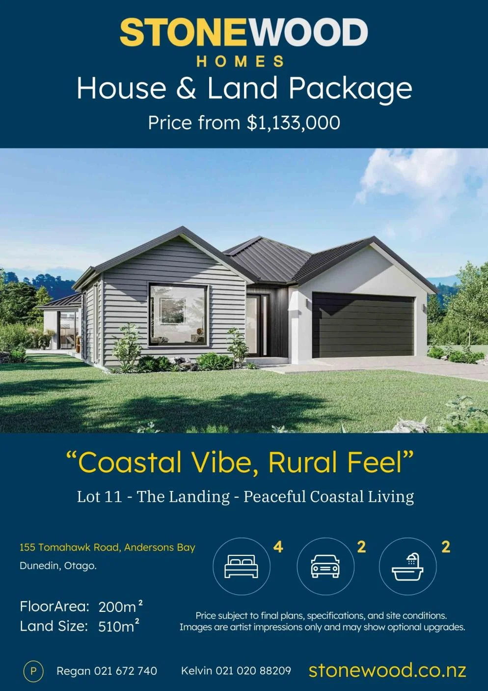 Your future begins here — The Landing, 155 Tomahawk Road, Andersons Bay. Contact us today to explore available sections and discover how Stonewood Homes can bring your new home to life.