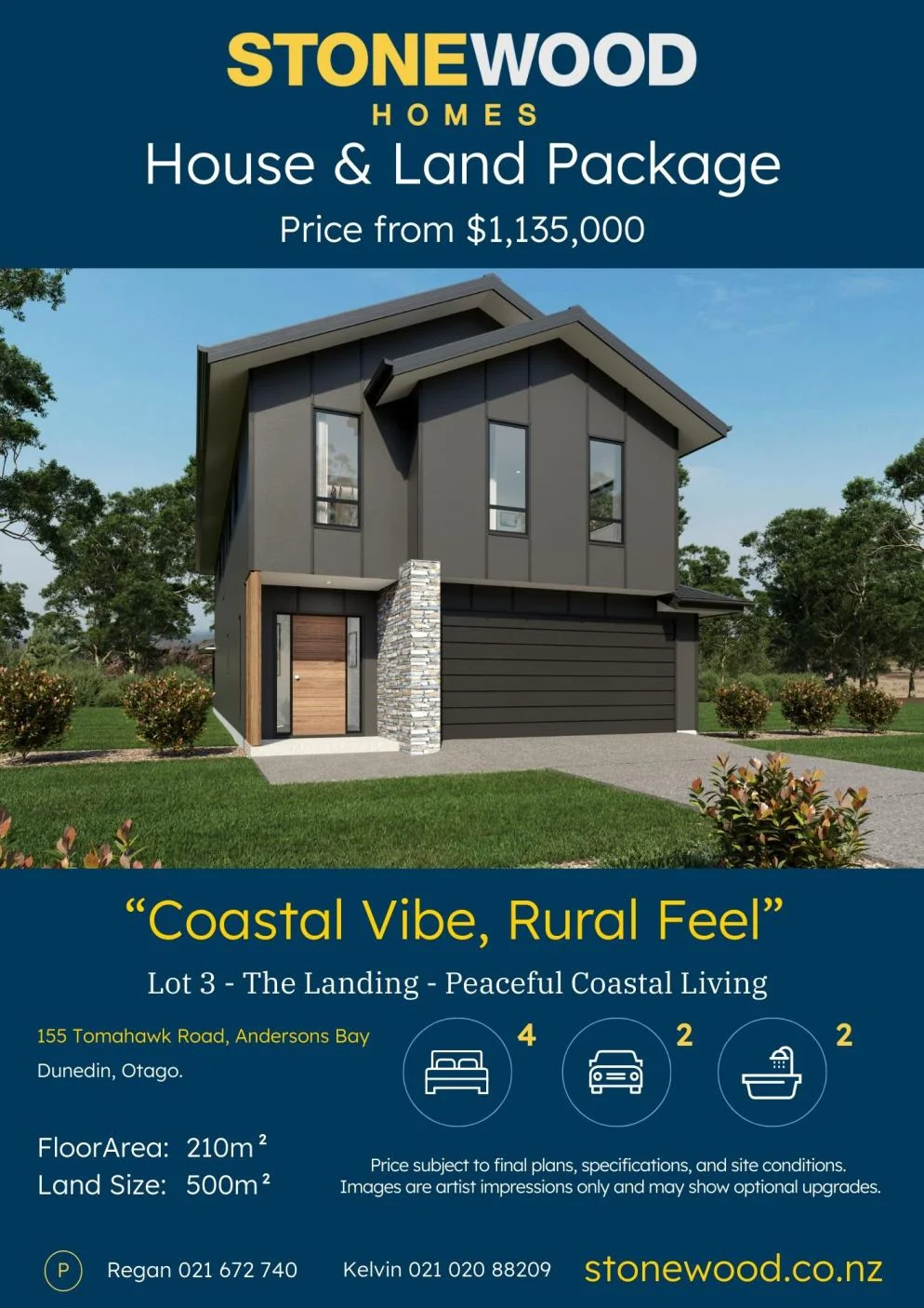Your future begins here — The Landing, 155 Tomahawk Road, Andersons Bay. Contact us today to explore available sections and discover how Stonewood Homes can bring your new home to life.