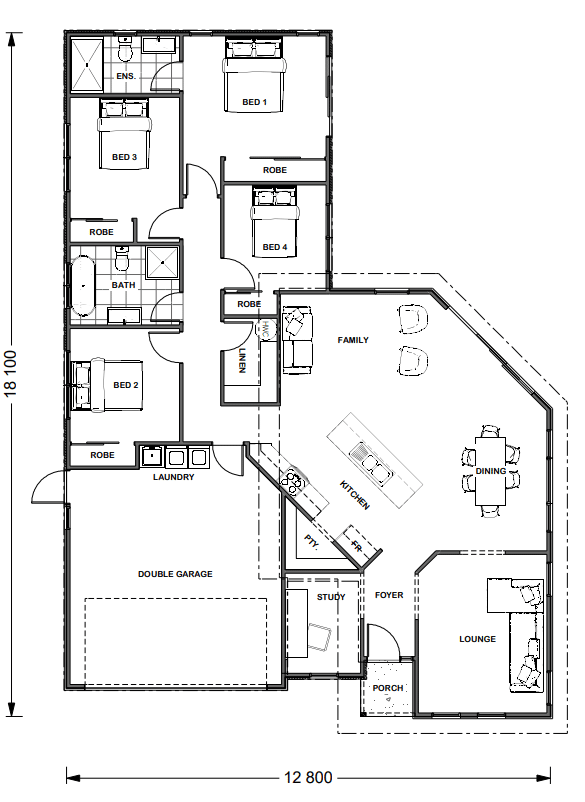 This 180 sqm four-bedroom, two-bathroom modern home is designed to let in light with its northerly aspect to living, dining and kitchen, it also provides open plan living as well as a separate living/ media room offering good separation for a growing family. There is even a study nook for homework or those working from home.