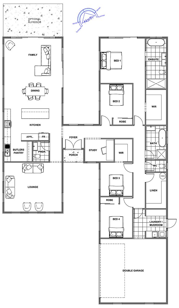 This home has been designed to stand out from the crowd and harness the beauty of natural light at every turn. With 2 separate wings, this design encapsulates privacy and luxury perfectly. See it for yourself.